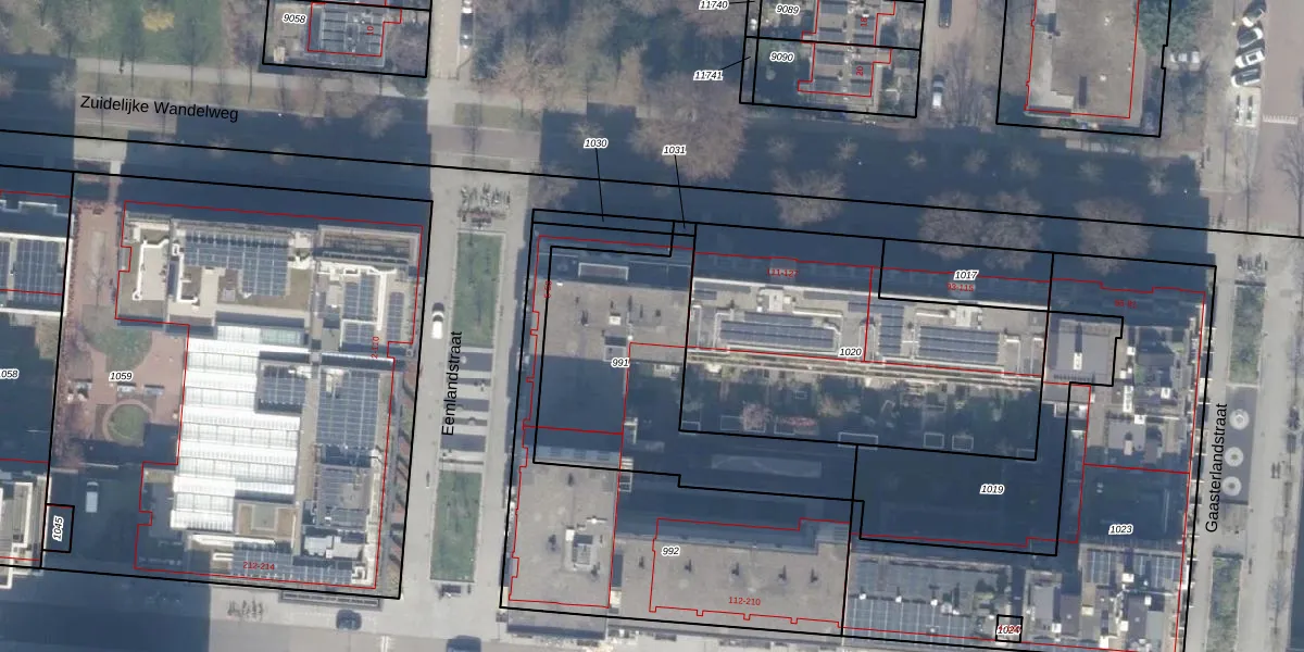 Het perceel waarop Eemlandstraat 13 staat heeft een oppervlakte van 974 m². Dit is een groot perceel. De perceeloppervlakte wordt geregistreerd door het Kadaster. Gedetailleerde informatie over de maten van dit perceel kunt u vinden in het rapport Kadastrale kaart met maatvoering van Eemlandstraat 13.