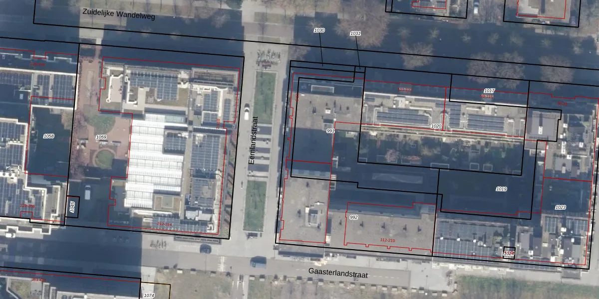 Het perceel waarop Eemlandstraat 25 staat heeft een oppervlakte van 974 m². Dit is een groot perceel. De perceeloppervlakte wordt geregistreerd door het Kadaster. Gedetailleerde informatie over de maten van dit perceel kunt u vinden in het rapport Kadastrale kaart met maatvoering van Eemlandstraat 25.