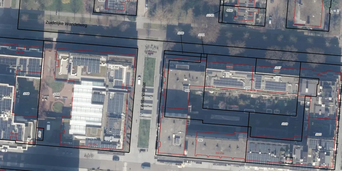 Het perceel waarop Eemlandstraat 27 staat heeft een oppervlakte van 974 m². Dit is een groot perceel. De perceeloppervlakte wordt geregistreerd door het Kadaster. Gedetailleerde informatie over de maten van dit perceel kunt u vinden in het rapport Kadastrale kaart met maatvoering van Eemlandstraat 27.