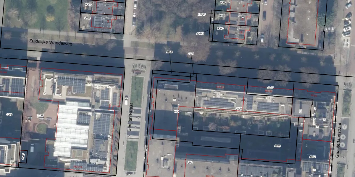 Het perceel waarop Eemlandstraat 31 staat heeft een oppervlakte van 974 m². Dit is een groot perceel. De perceeloppervlakte wordt geregistreerd door het Kadaster. Gedetailleerde informatie over de maten van dit perceel kunt u vinden in het rapport Kadastrale kaart met maatvoering van Eemlandstraat 31.