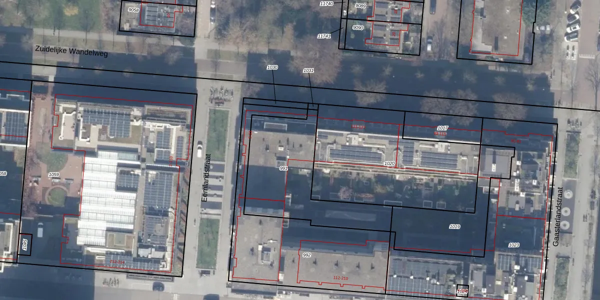 Het perceel waarop Eemlandstraat 43 staat heeft een oppervlakte van 974 m². Dit is een groot perceel. De perceeloppervlakte wordt geregistreerd door het Kadaster. Gedetailleerde informatie over de maten van dit perceel kunt u vinden in het rapport Kadastrale kaart met maatvoering van Eemlandstraat 43.