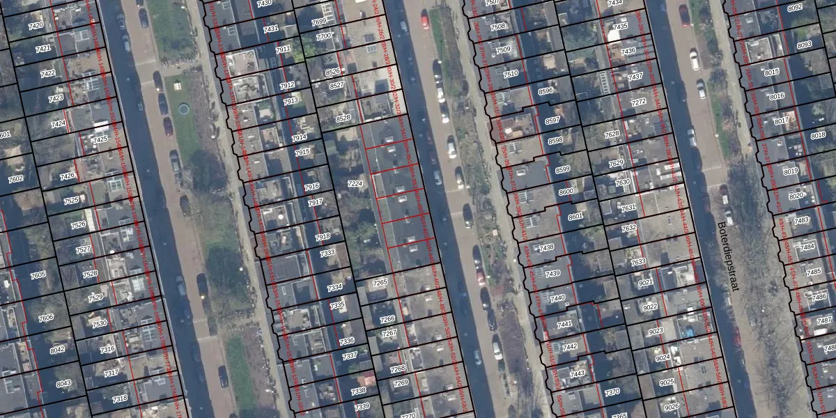 Het adres ligt op het perceel ASD18-V-7224, dat zich in de kadastrale gemeente Amsterdam bevindt. De oppervlakte van het perceel is 768 m². Dat is groter dan gemiddeld in Amsterdam, waar de gemiddelde perceeloppervlakte op 559,23 m² ligt. Het grootste perceel in de kadastrale gemeente is 12,5 ha. Het kleinste perceel heeft een oppervlakte van 0 m². Er zijn 18 adressen aanwezig op het perceel. In de Basisregistratie Kadaster (BRK) werden de grenzen van het perceel geregistreerd op 29-11-2006.