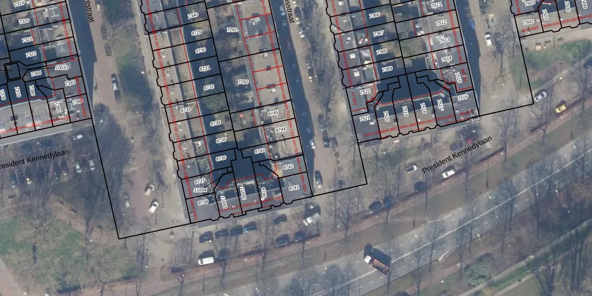 Het adres ligt op het perceel ASD18-V-8743, dat zich in de kadastrale gemeente Amsterdam bevindt. Het perceel is kleiner dan gemiddeld in Amsterdam. Het perceel is 108 m² groot, terwijl het gemiddelde ligt op 559,23 m². Het kleinste perceel in de kadastrale gemeente is 0 m² groot. De grootste perceeloppervlakte is 12,5 ha. Op het perceel liggen in totaal 3 adressen. De huidige grenzen van het perceel zijn digitaal in de Basisregistratie Kadaster (BRK) geregistreerd op 12-08-2009.
