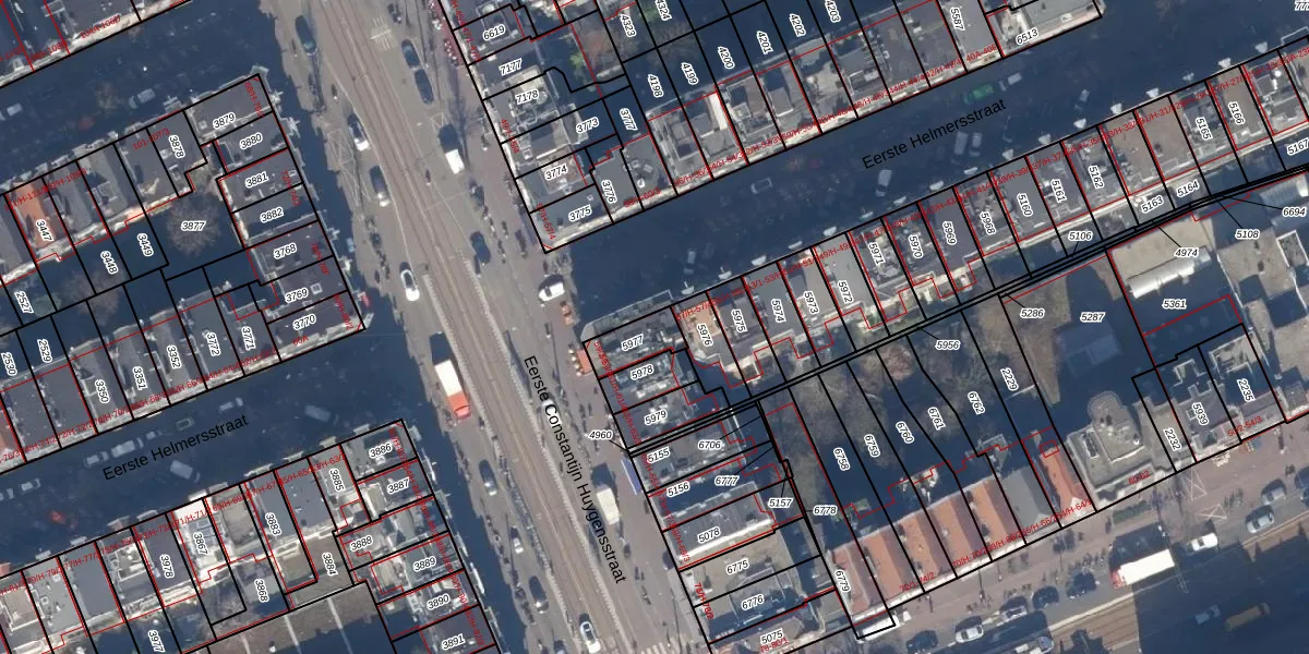 Het adres ligt op het perceel ASD13-Q-5977, dat zich in de kadastrale gemeente Amsterdam bevindt. De gemiddelde perceelgrootte in Amsterdam is 393,94 m². Dit perceel is kleiner: de perceeloppervlakte bedraagt 89 m². Het grootste perceel in de kadastrale gemeente is 6,2 ha. Het kleinste perceel heeft een oppervlakte van 1 m². Op het perceel liggen in totaal 4 adressen. De huidige grenzen van het perceel zijn digitaal in de Basisregistratie Kadaster (BRK) geregistreerd op 03-11-2006.