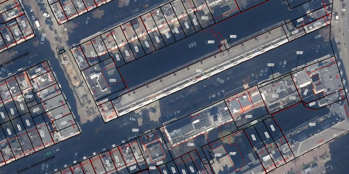 Het perceel waarop Eerste Helmersstraat 6-K staat heeft een oppervlakte van 1155 m². Dit is een zeer groot perceel. De perceeloppervlakte wordt geregistreerd door het Kadaster. Gedetailleerde informatie over de maten van dit perceel kunt u vinden in het rapport Kadastrale kaart met maatvoering van Eerste Helmersstraat 6-K.