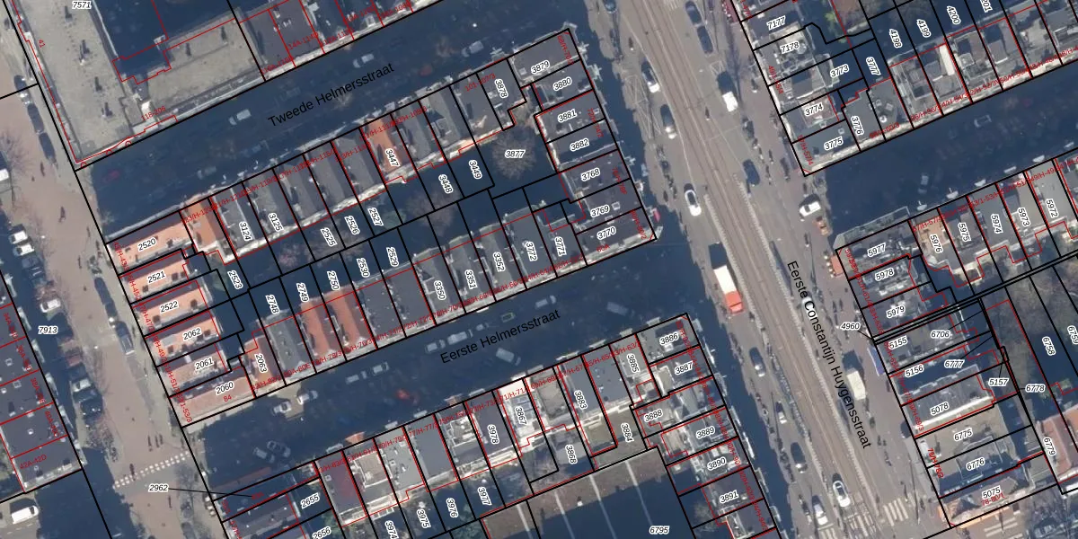 Eerste Helmersstraat 64-3 is gelegen op kadastraal perceel ASD13Q3772. Deze kadastrale aanduiding is uniek en wordt gebruikt door het Kadaster om eigendomsrechten en andere zakelijke rechten vast te leggen. Het perceel maakt onderdeel uit van de kadastrale gemeente Amsterdam.