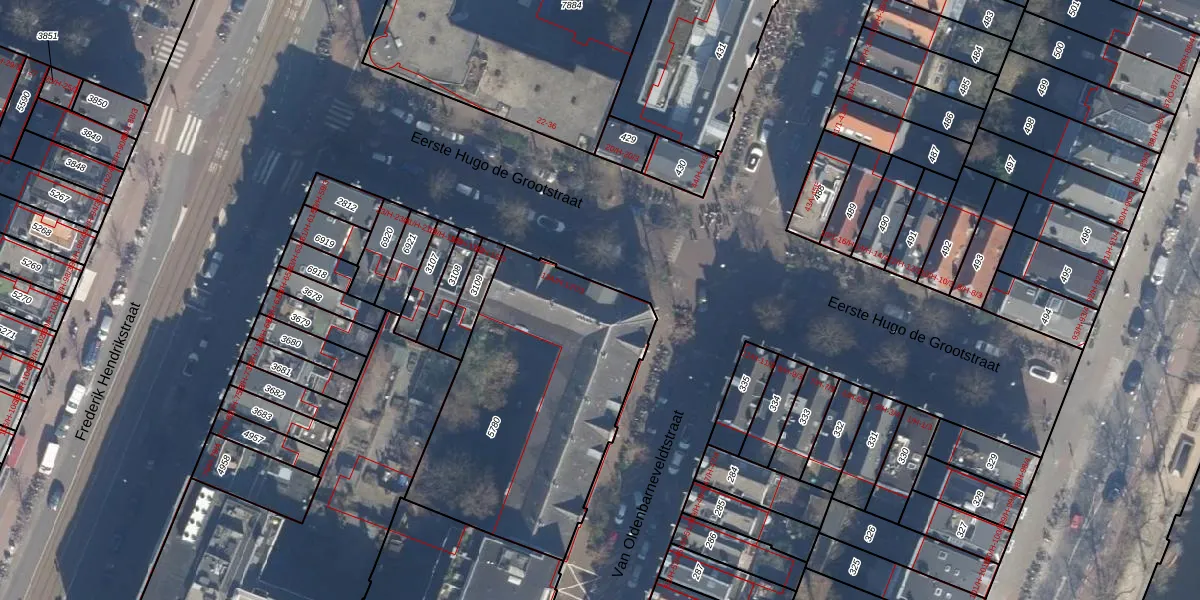Het adres ligt op het perceel ASD13-Q-5780, dat zich in de kadastrale gemeente Amsterdam bevindt. Het perceel is met 1260 m² relatief groot. Het gemiddelde ligt in de kadastrale gemeente Amsterdam op 393,94 m². Het kleinste perceel in de kadastrale gemeente is 1 m² groot. De grootste perceeloppervlakte is 6,2 ha. Op het perceel zijn 50 adressen aanwezig. De huidige grenzen van het perceel zijn digitaal in de Basisregistratie Kadaster (BRK) geregistreerd op 23-01-2007.
