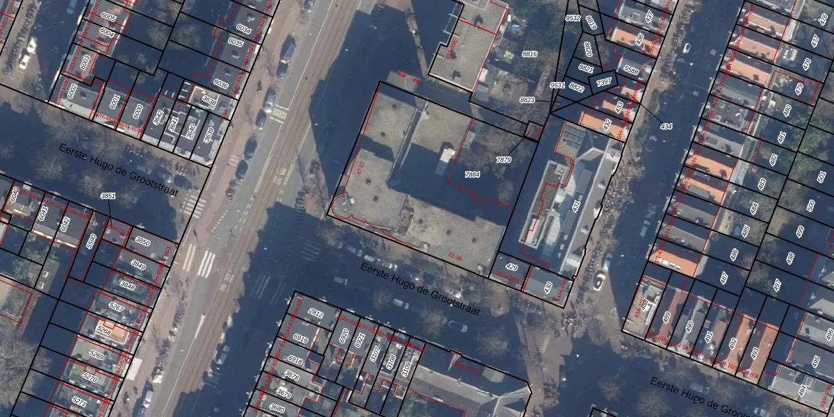 Eerste Hugo de Grootstraat 30-B is gelegen op kadastraal perceel ASD13Q7884. Deze kadastrale aanduiding is uniek en wordt gebruikt door het Kadaster om eigendomsrechten en andere zakelijke rechten vast te leggen. Het perceel maakt onderdeel uit van de kadastrale gemeente Amsterdam.