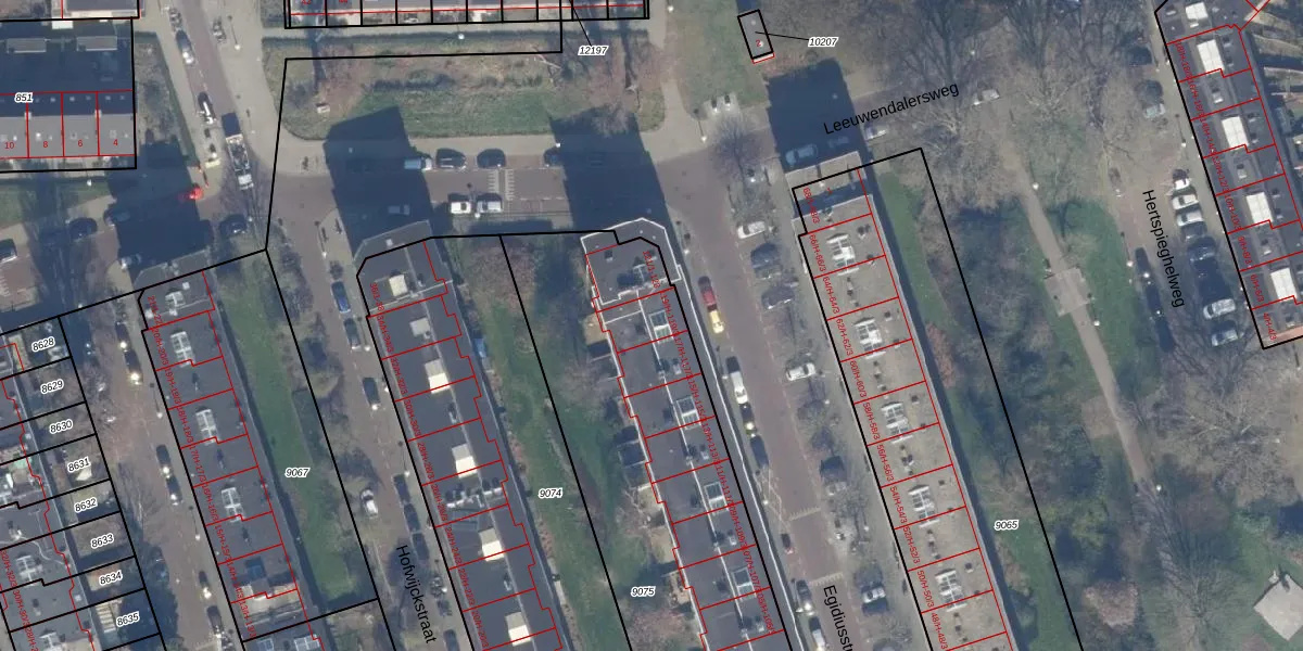Het perceel waarop Egidiusstraat 119-H staat heeft een oppervlakte van 2590 m². Dit is een zeer groot perceel. De perceeloppervlakte wordt geregistreerd door het Kadaster. Gedetailleerde informatie over de maten van dit perceel kunt u vinden in het rapport Kadastrale kaart met maatvoering van Egidiusstraat 119-H.