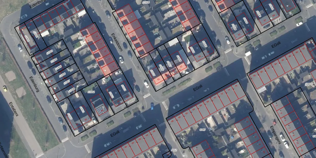 Het perceel waarop EGoli 51 staat heeft een oppervlakte van 194 m². Dit is een middelgroot perceel. De perceeloppervlakte wordt geregistreerd door het Kadaster. Gedetailleerde informatie over de maten van dit perceel kunt u vinden in het rapport Kadastrale kaart met maatvoering van EGoli 51.