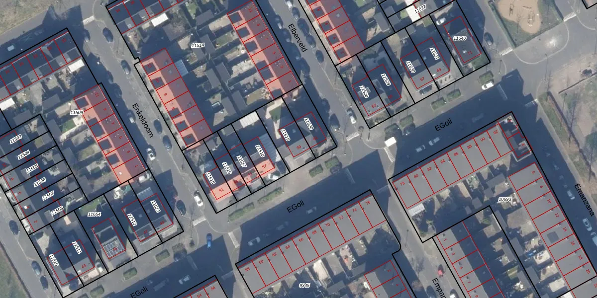 Gebruik de zoekbalk of klik op een perceel voor informatie over de adressen binnen dit perceel.