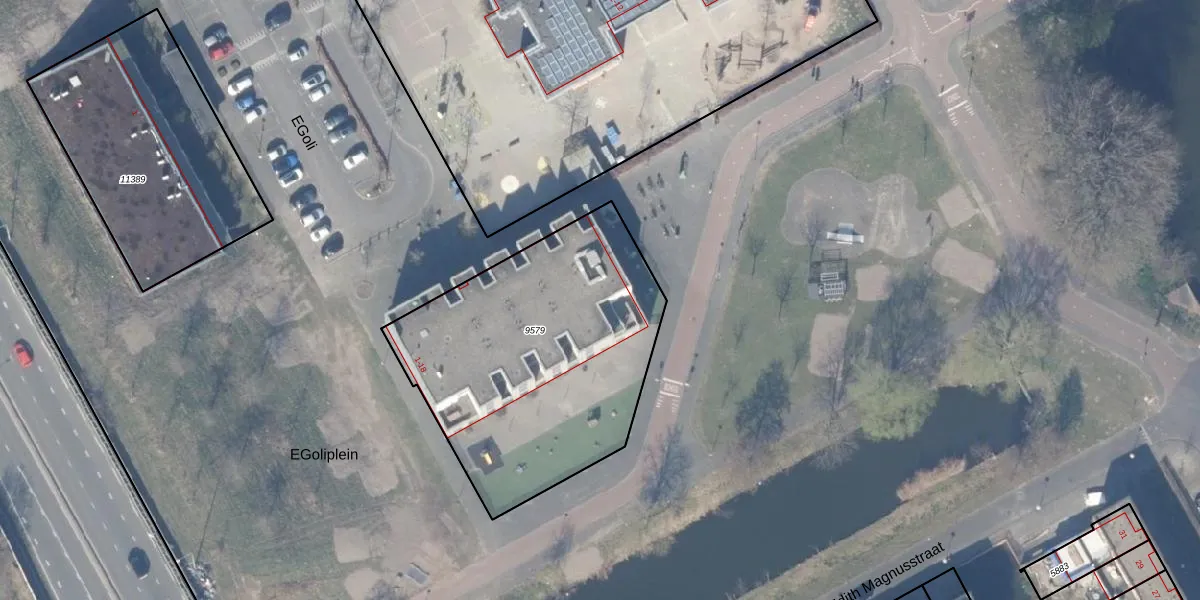 Het perceel waarop EGoliplein 9 staat heeft een oppervlakte van 1440 m². Dit is een zeer groot perceel. De perceeloppervlakte wordt geregistreerd door het Kadaster. Gedetailleerde informatie over de maten van dit perceel kunt u vinden in het rapport Kadastrale kaart met maatvoering van EGoliplein 9.