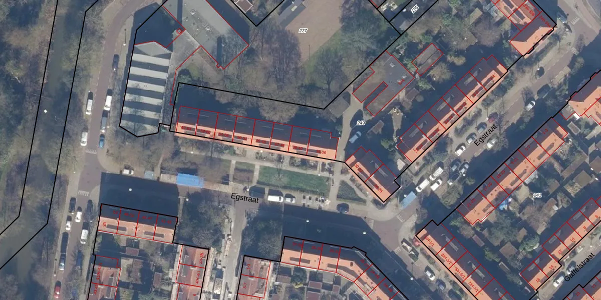 Het perceel waarop Egstraat 38 staat heeft een oppervlakte van 3549 m². Dit is een zeer groot perceel. De perceeloppervlakte wordt geregistreerd door het Kadaster. Gedetailleerde informatie over de maten van dit perceel kunt u vinden in het rapport Kadastrale kaart met maatvoering van Egstraat 38.