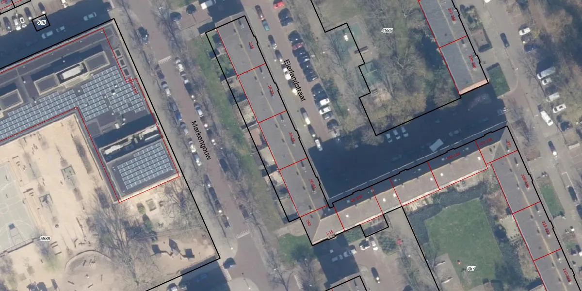 Het perceel waarop Eierlandstraat 44 staat heeft een oppervlakte van 4897 m². Dit is een zeer groot perceel. De perceeloppervlakte wordt geregistreerd door het Kadaster. Gedetailleerde informatie over de maten van dit perceel kunt u vinden in het rapport Kadastrale kaart met maatvoering van Eierlandstraat 44.
