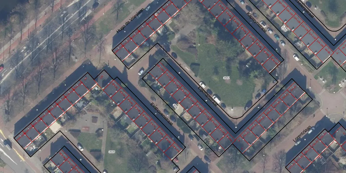 Het perceel waarop Eijkmanstraat 16-H staat heeft een oppervlakte van 1897 m². Dit is een zeer groot perceel. De perceeloppervlakte wordt geregistreerd door het Kadaster. Gedetailleerde informatie over de maten van dit perceel kunt u vinden in het rapport Kadastrale kaart met maatvoering van Eijkmanstraat 16-H.