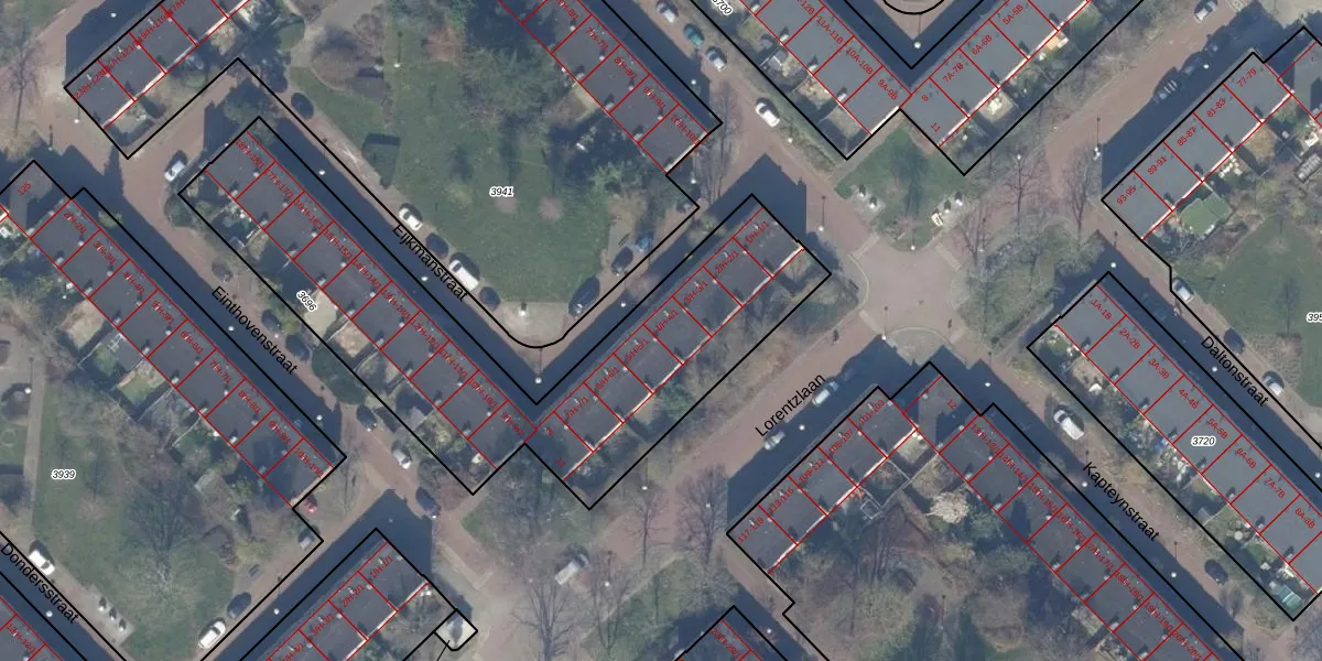 Het perceel waarop Eijkmanstraat 4-H staat heeft een oppervlakte van 1897 m². Dit is een zeer groot perceel. De perceeloppervlakte wordt geregistreerd door het Kadaster. Gedetailleerde informatie over de maten van dit perceel kunt u vinden in het rapport Kadastrale kaart met maatvoering van Eijkmanstraat 4-H.