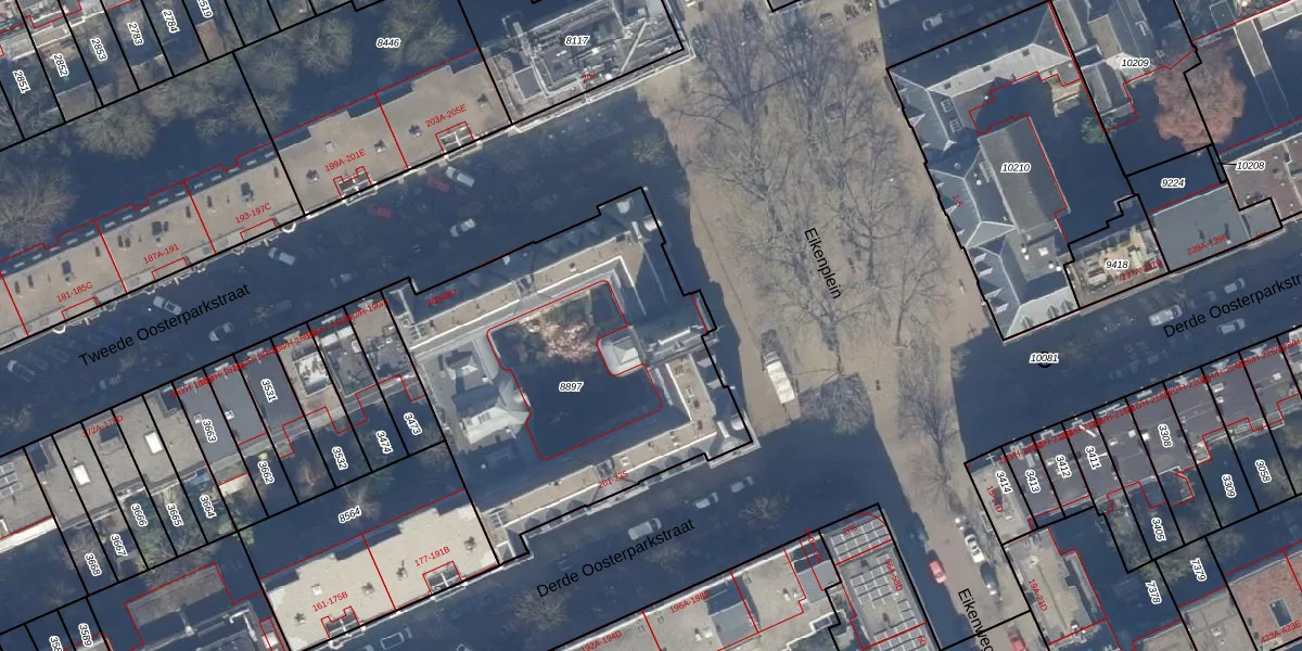Het adres ligt op het perceel ASD15-S-8897, dat zich in de kadastrale gemeente Amsterdam bevindt. Het perceel is met 1780 m² relatief groot. Het gemiddelde ligt in de kadastrale gemeente Amsterdam op 537,06 m². De grootste perceeloppervlakte in de kadastrale gemeente is 14,5 ha. De kleinste oppervlakte bedraagt 0 m². Er zijn 51 adressen aanwezig op het perceel. In de Basisregistratie Kadaster (BRK) werden de grenzen van het perceel geregistreerd op 17-11-2006.