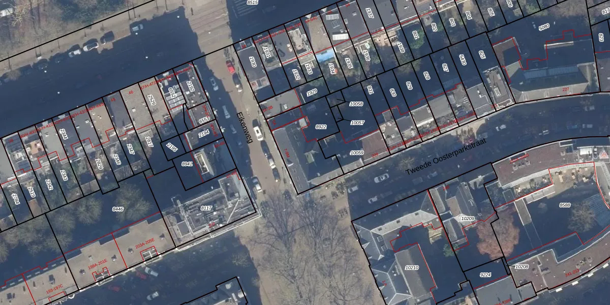 Eikenweg 9-B is gelegen op kadastraal perceel ASD15S8922. Deze kadastrale aanduiding is uniek en wordt gebruikt door het Kadaster om eigendomsrechten en andere zakelijke rechten vast te leggen. Het perceel maakt onderdeel uit van de kadastrale gemeente Amsterdam.