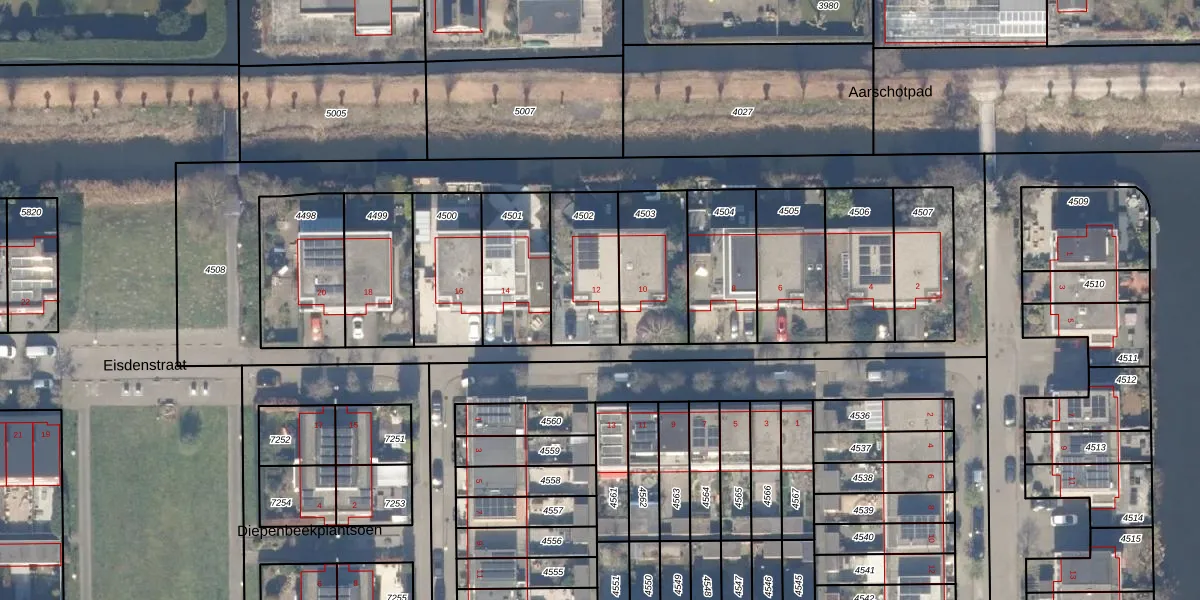 Gebruik de zoekbalk of klik op een perceel voor informatie over de adressen binnen dit perceel.