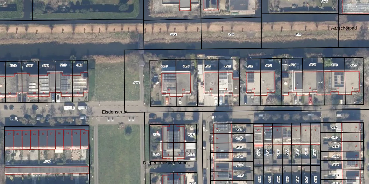 Eisdenstraat 18 is gelegen op kadastraal perceel STN02E4499. Deze kadastrale aanduiding is uniek en wordt gebruikt door het Kadaster om eigendomsrechten en andere zakelijke rechten vast te leggen. Het perceel maakt onderdeel uit van de kadastrale gemeente Sloten Noord-Holland.