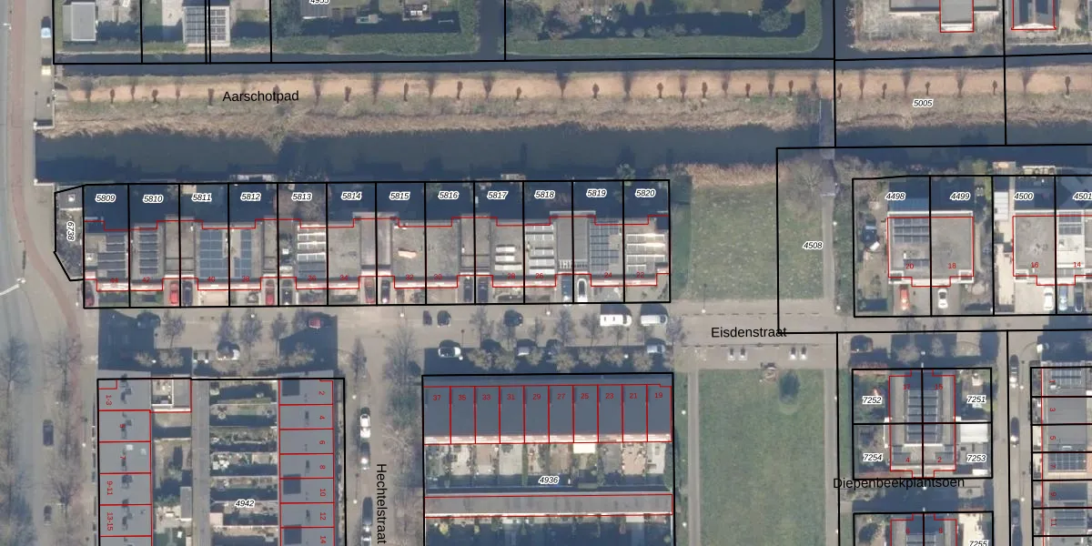 Eisdenstraat 26 is gelegen op kadastraal perceel STN02E5818. Deze kadastrale aanduiding is uniek en wordt gebruikt door het Kadaster om eigendomsrechten en andere zakelijke rechten vast te leggen. Het perceel maakt onderdeel uit van de kadastrale gemeente Sloten Noord-Holland.