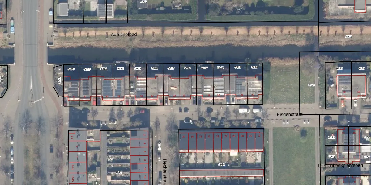 Gebruik de zoekbalk of klik op een perceel voor informatie over de adressen binnen dit perceel.