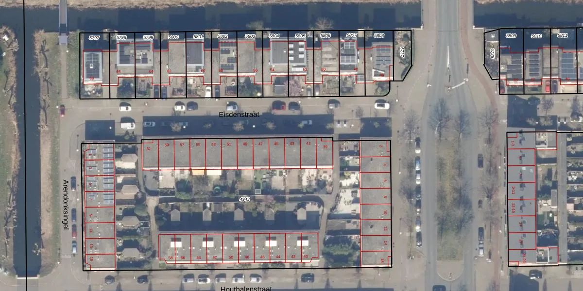 Het perceel waarop Eisdenstraat 43 staat heeft een oppervlakte van 4715 m². Dit is een zeer groot perceel. De perceeloppervlakte wordt geregistreerd door het Kadaster. Gedetailleerde informatie over de maten van dit perceel kunt u vinden in het rapport Kadastrale kaart met maatvoering van Eisdenstraat 43.