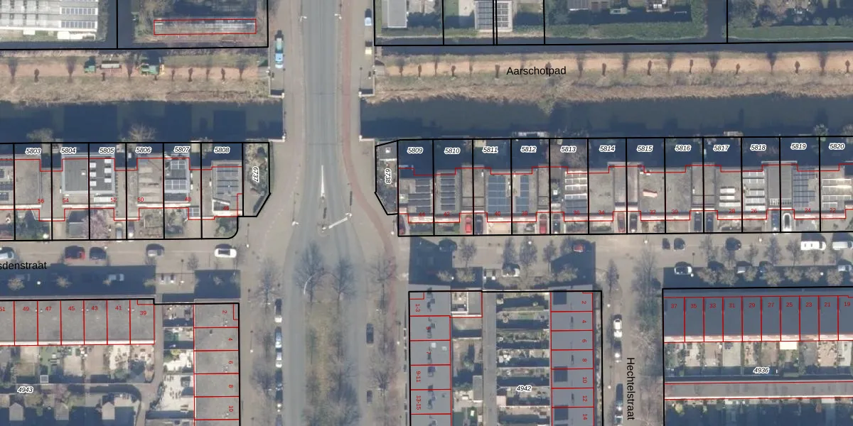 Gebruik de zoekbalk of klik op een perceel voor informatie over de adressen binnen dit perceel.
