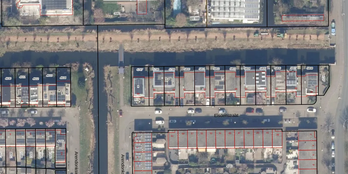 Eisdenstraat 64 is gelegen op kadastraal perceel STN02E5799. Deze kadastrale aanduiding is uniek en wordt gebruikt door het Kadaster om eigendomsrechten en andere zakelijke rechten vast te leggen. Het perceel maakt onderdeel uit van de kadastrale gemeente Sloten Noord-Holland.