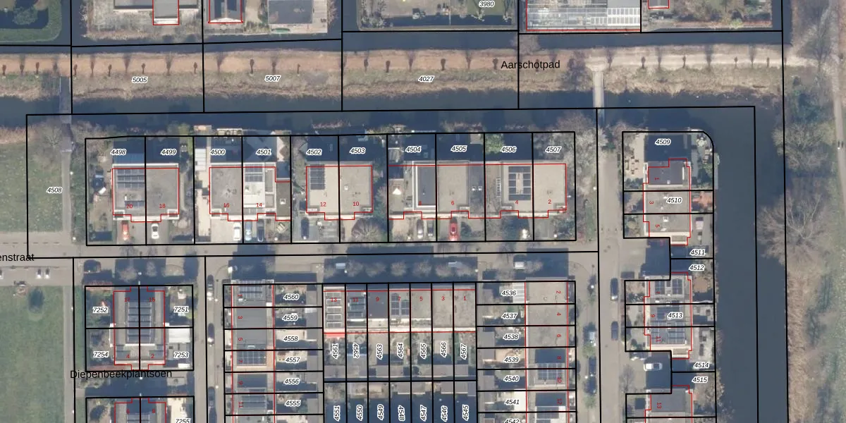 Gebruik de zoekbalk of klik op een perceel voor informatie over de adressen binnen dit perceel.