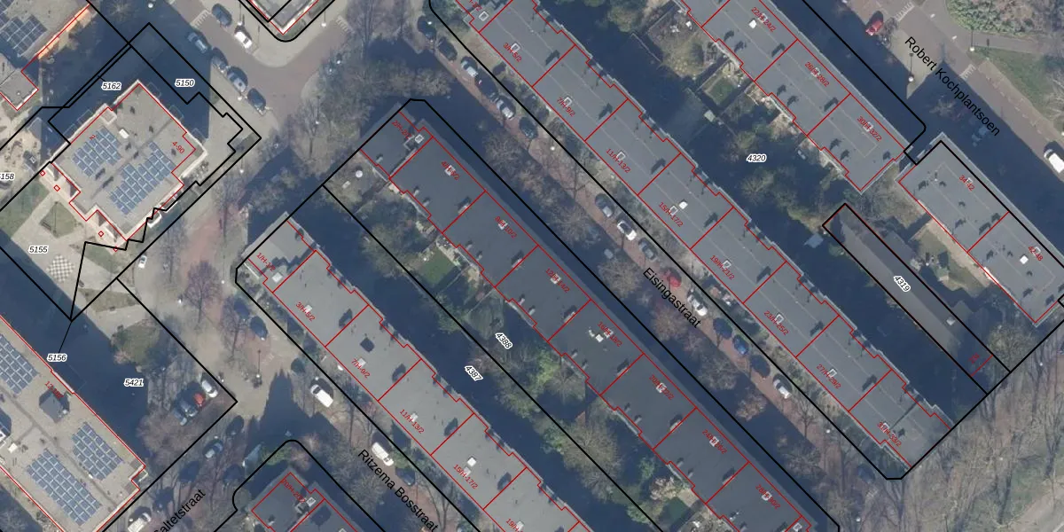 Het perceel waarop Eisingastraat 12-2 staat heeft een oppervlakte van 2828 m². Dit is een zeer groot perceel. De perceeloppervlakte wordt geregistreerd door het Kadaster. Gedetailleerde informatie over de maten van dit perceel kunt u vinden in het rapport Kadastrale kaart met maatvoering van Eisingastraat 12-2.