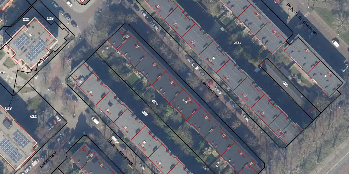 Het perceel waarop Eisingastraat 14-2 staat heeft een oppervlakte van 2828 m². Dit is een zeer groot perceel. De perceeloppervlakte wordt geregistreerd door het Kadaster. Gedetailleerde informatie over de maten van dit perceel kunt u vinden in het rapport Kadastrale kaart met maatvoering van Eisingastraat 14-2.