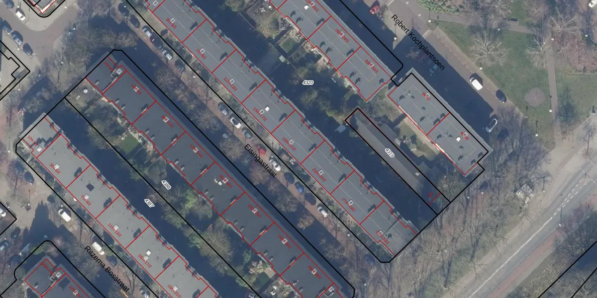 Eisingastraat 21-1 is gelegen op kadastraal perceel WTG02A4320. Deze kadastrale aanduiding is uniek en wordt gebruikt door het Kadaster om eigendomsrechten en andere zakelijke rechten vast te leggen. Het perceel maakt onderdeel uit van de kadastrale gemeente Watergraafsmeer.