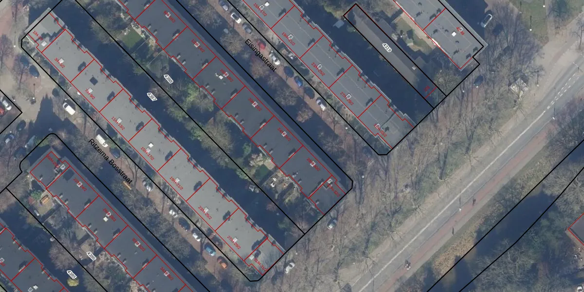 Het perceel waarop Eisingastraat 26-1 staat heeft een oppervlakte van 2828 m². Dit is een zeer groot perceel. De perceeloppervlakte wordt geregistreerd door het Kadaster. Gedetailleerde informatie over de maten van dit perceel kunt u vinden in het rapport Kadastrale kaart met maatvoering van Eisingastraat 26-1.