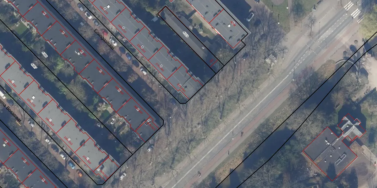 Het perceel waarop Eisingastraat 33-H staat heeft een oppervlakte van 6179 m². Dit is een zeer groot perceel. De perceeloppervlakte wordt geregistreerd door het Kadaster. Gedetailleerde informatie over de maten van dit perceel kunt u vinden in het rapport Kadastrale kaart met maatvoering van Eisingastraat 33-H.