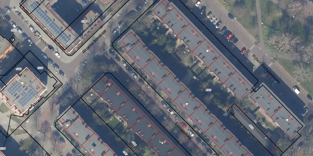 Het perceel waarop Eisingastraat 9-H staat heeft een oppervlakte van 6179 m². Dit is een zeer groot perceel. De perceeloppervlakte wordt geregistreerd door het Kadaster. Gedetailleerde informatie over de maten van dit perceel kunt u vinden in het rapport Kadastrale kaart met maatvoering van Eisingastraat 9-H.