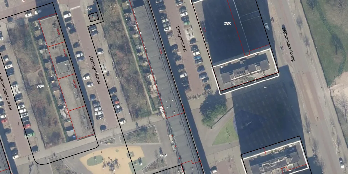 Het perceel waarop Ekingenstraat 42 staat heeft een oppervlakte van 6584 m². Dit is een zeer groot perceel. De perceeloppervlakte wordt geregistreerd door het Kadaster. Gedetailleerde informatie over de maten van dit perceel kunt u vinden in het rapport Kadastrale kaart met maatvoering van Ekingenstraat 42.