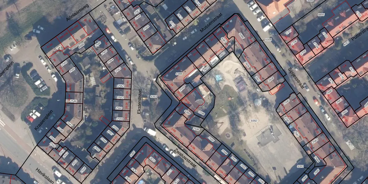 Het perceel waarop Eksterstraat 22 staat heeft een oppervlakte van 55 m². Dit is een klein perceel. De perceeloppervlakte wordt geregistreerd door het Kadaster. Gedetailleerde informatie over de maten van dit perceel kunt u vinden in het rapport Kadastrale kaart met maatvoering van Eksterstraat 22.