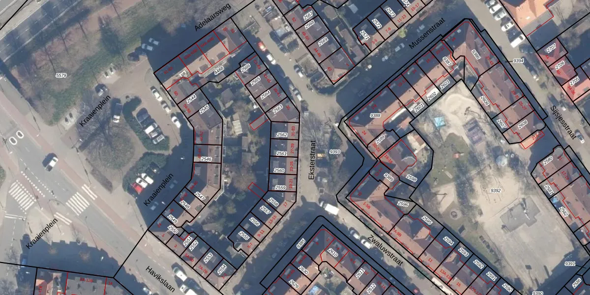 Het perceel waarop Eksterstraat 29 staat heeft een oppervlakte van 56 m². Dit is een klein perceel. De perceeloppervlakte wordt geregistreerd door het Kadaster. Gedetailleerde informatie over de maten van dit perceel kunt u vinden in het rapport Kadastrale kaart met maatvoering van Eksterstraat 29.