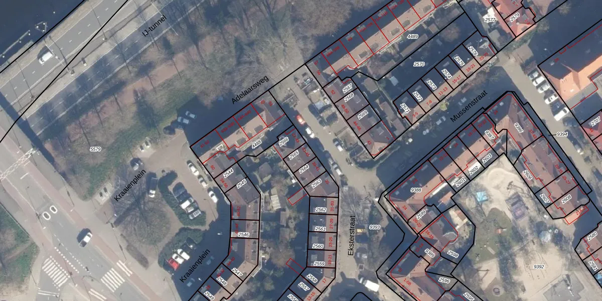 Eksterstraat 45 is gelegen op kadastraal perceel ASD07K2565. Deze kadastrale aanduiding is uniek en wordt gebruikt door het Kadaster om eigendomsrechten en andere zakelijke rechten vast te leggen. Het perceel maakt onderdeel uit van de kadastrale gemeente Amsterdam.