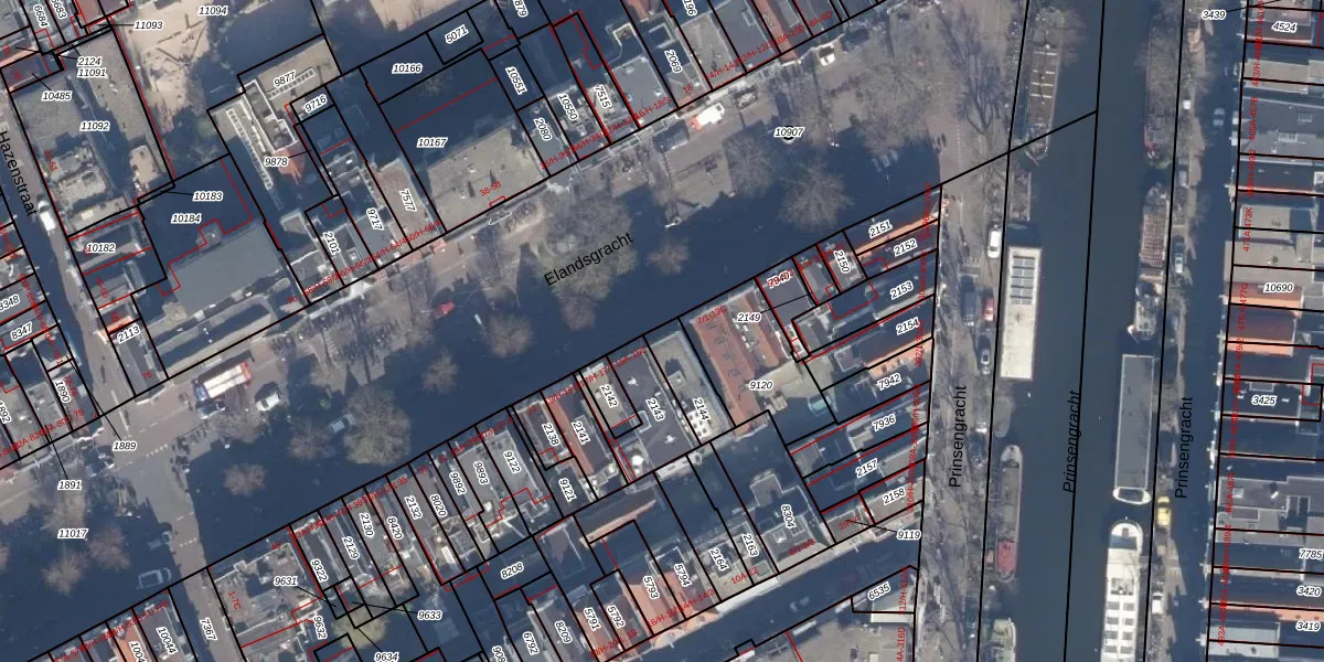 Elandsgracht 13-A is gelegen op kadastraal perceel ASD03E2144. Deze kadastrale aanduiding is uniek en wordt gebruikt door het Kadaster om eigendomsrechten en andere zakelijke rechten vast te leggen. Het perceel maakt onderdeel uit van de kadastrale gemeente Amsterdam.