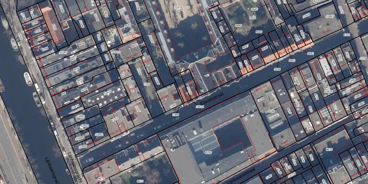 Het adres ligt op het perceel ASD03-E-10031, dat zich in de kadastrale gemeente Amsterdam bevindt. Het perceel is 64 m² groot. Dat is kleiner dan de gemiddelde perceeloppervlakte in Amsterdam, dat op 295,09 m² ligt. De grootste perceeloppervlakte in de kadastrale gemeente is 2,0 ha. De kleinste oppervlakte bedraagt 0 m². Er zijn 2 adressen aanwezig op het perceel. De huidige grenzen van het perceel zijn digitaal in de Basisregistratie Kadaster (BRK) geregistreerd op 03-10-2006.