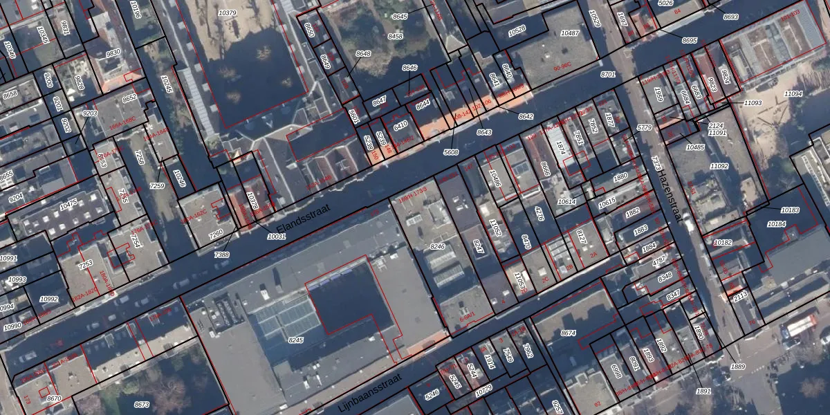 Het perceel waarop Elandsstraat 171-2 staat heeft een oppervlakte van 446 m². Dit is een groot perceel. De perceeloppervlakte wordt geregistreerd door het Kadaster. Gedetailleerde informatie over de maten van dit perceel kunt u vinden in het rapport Kadastrale kaart met maatvoering van Elandsstraat 171-2.