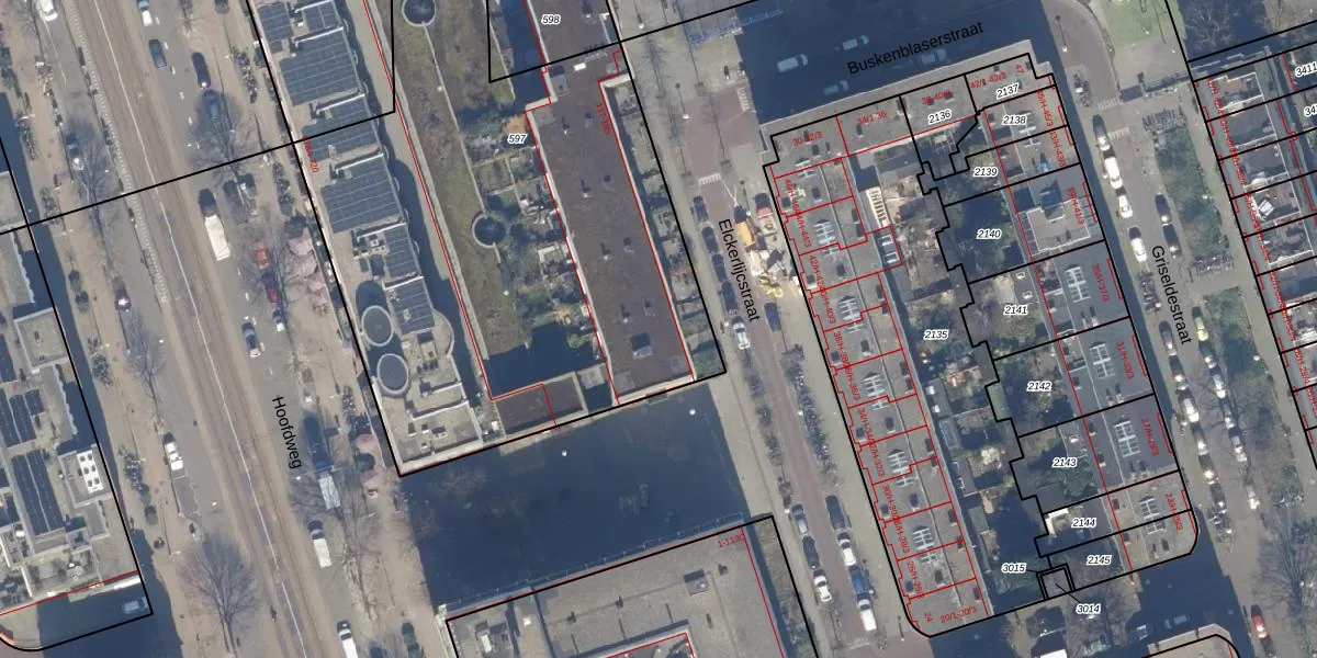 Het perceel waarop Elckerlijcstraat 117 staat heeft een oppervlakte van 3266 m². Dit is een zeer groot perceel. De perceeloppervlakte wordt geregistreerd door het Kadaster. Gedetailleerde informatie over de maten van dit perceel kunt u vinden in het rapport Kadastrale kaart met maatvoering van Elckerlijcstraat 117.