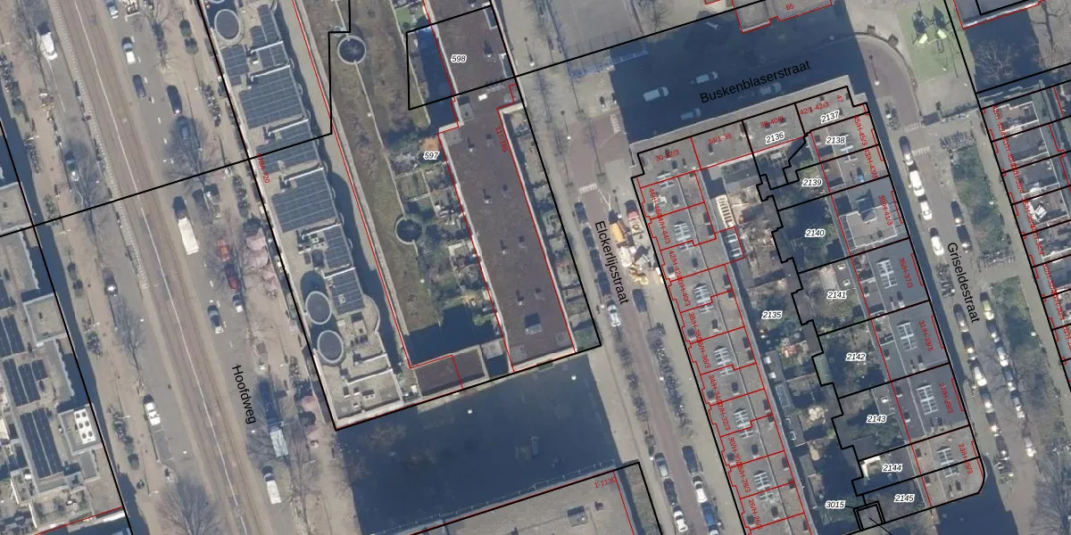 Het perceel waarop Elckerlijcstraat 125 staat heeft een oppervlakte van 3266 m². Dit is een zeer groot perceel. De perceeloppervlakte wordt geregistreerd door het Kadaster. Gedetailleerde informatie over de maten van dit perceel kunt u vinden in het rapport Kadastrale kaart met maatvoering van Elckerlijcstraat 125.
