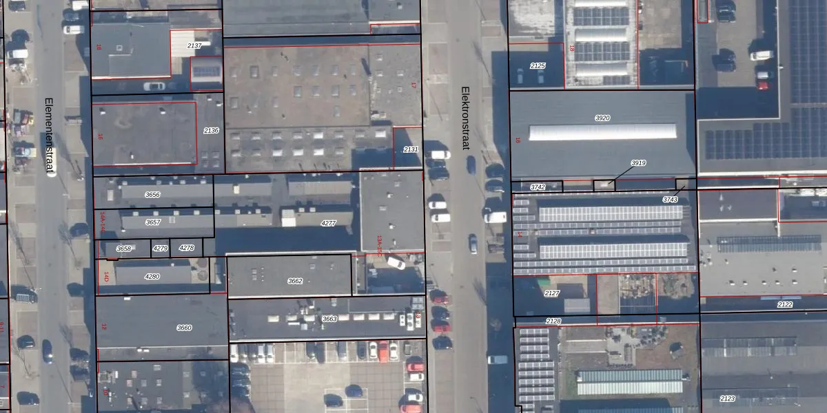 Het perceel waarop Elektronstraat 15-C staat heeft een oppervlakte van 1215 m². Dit is een zeer groot perceel. De perceeloppervlakte wordt geregistreerd door het Kadaster. Gedetailleerde informatie over de maten van dit perceel kunt u vinden in het rapport Kadastrale kaart met maatvoering van Elektronstraat 15-C.