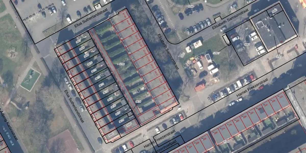 Het perceel waarop Elisabeth Samsonstraat 17 staat heeft een oppervlakte van 2112 m². Dit is een zeer groot perceel. De perceeloppervlakte wordt geregistreerd door het Kadaster. Gedetailleerde informatie over de maten van dit perceel kunt u vinden in het rapport Kadastrale kaart met maatvoering van Elisabeth Samsonstraat 17.