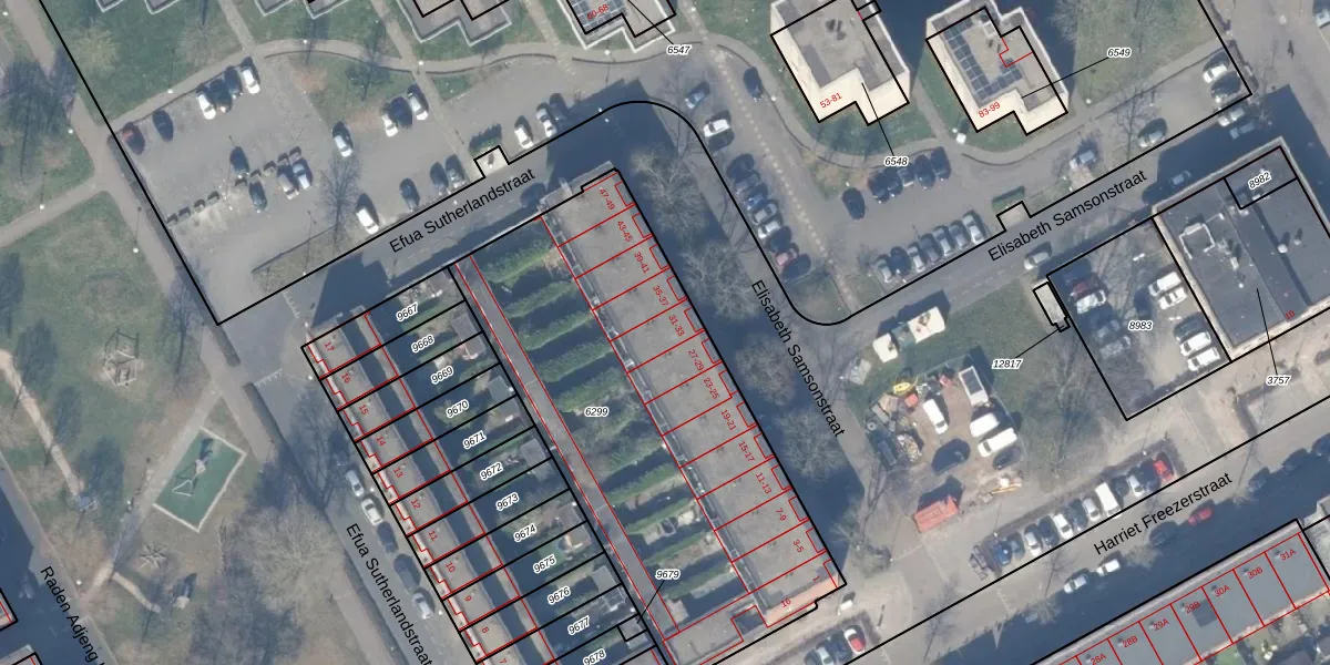 Het perceel waarop Elisabeth Samsonstraat 33 staat heeft een oppervlakte van 2112 m². Dit is een zeer groot perceel. De perceeloppervlakte wordt geregistreerd door het Kadaster. Gedetailleerde informatie over de maten van dit perceel kunt u vinden in het rapport Kadastrale kaart met maatvoering van Elisabeth Samsonstraat 33.