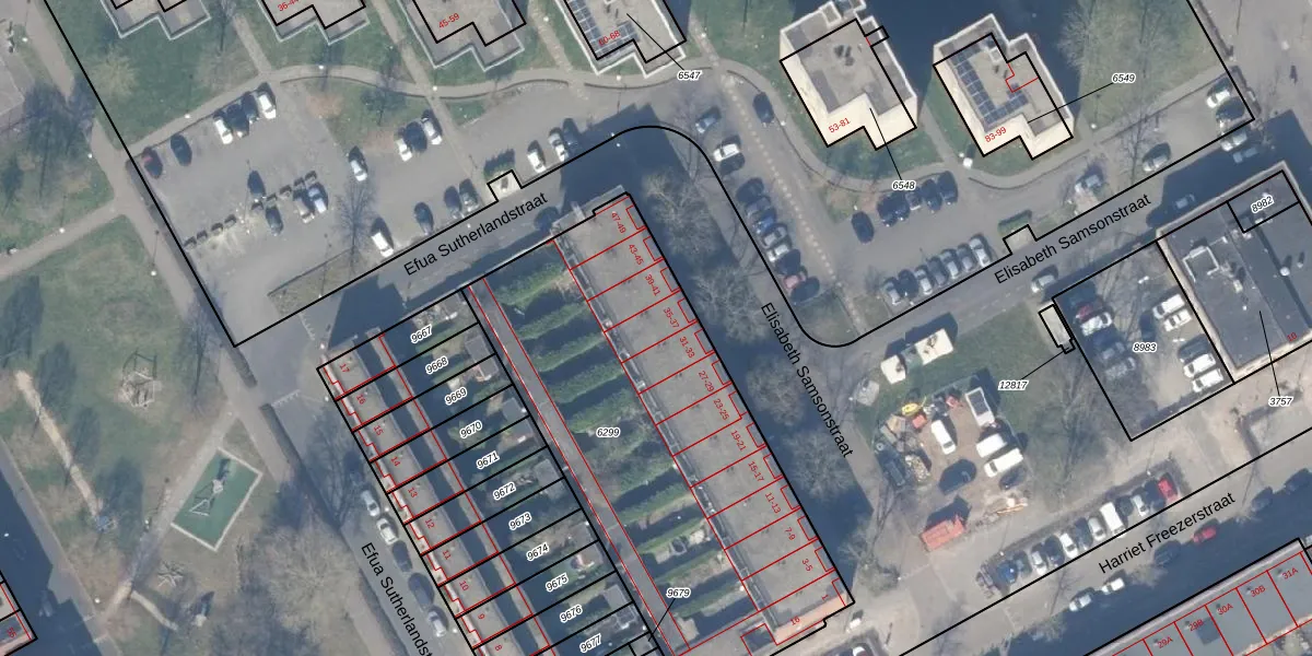 Het perceel waarop Elisabeth Samsonstraat 37 staat heeft een oppervlakte van 2112 m². Dit is een zeer groot perceel. De perceeloppervlakte wordt geregistreerd door het Kadaster. Gedetailleerde informatie over de maten van dit perceel kunt u vinden in het rapport Kadastrale kaart met maatvoering van Elisabeth Samsonstraat 37.
