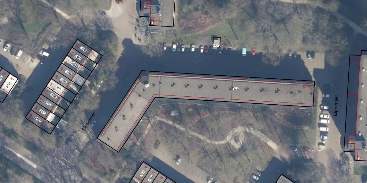 Het perceel waarop Elpermeer 101 staat heeft een oppervlakte van 1850 m². Dit is een zeer groot perceel. De perceeloppervlakte wordt geregistreerd door het Kadaster. Gedetailleerde informatie over de maten van dit perceel kunt u vinden in het rapport Kadastrale kaart met maatvoering van Elpermeer 101.